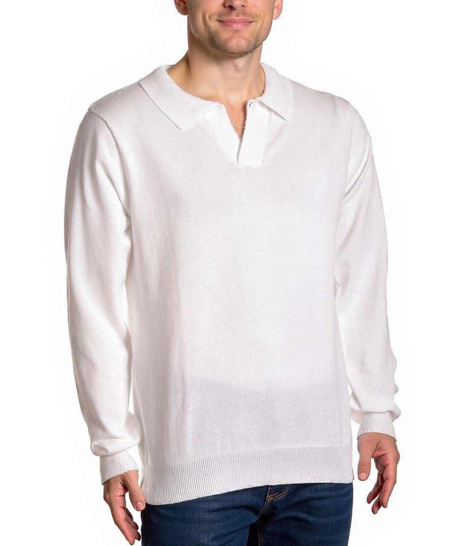 Елегантен мъжки пуловер от 100% памук в бял цвят. Меко и дишащо плетиво, дълги ръкави, яка с назъбен V-навой и рипсен подгъв. Универсален, подходящ за ежедневие и офис. Лесен за поддръжка запазва форма