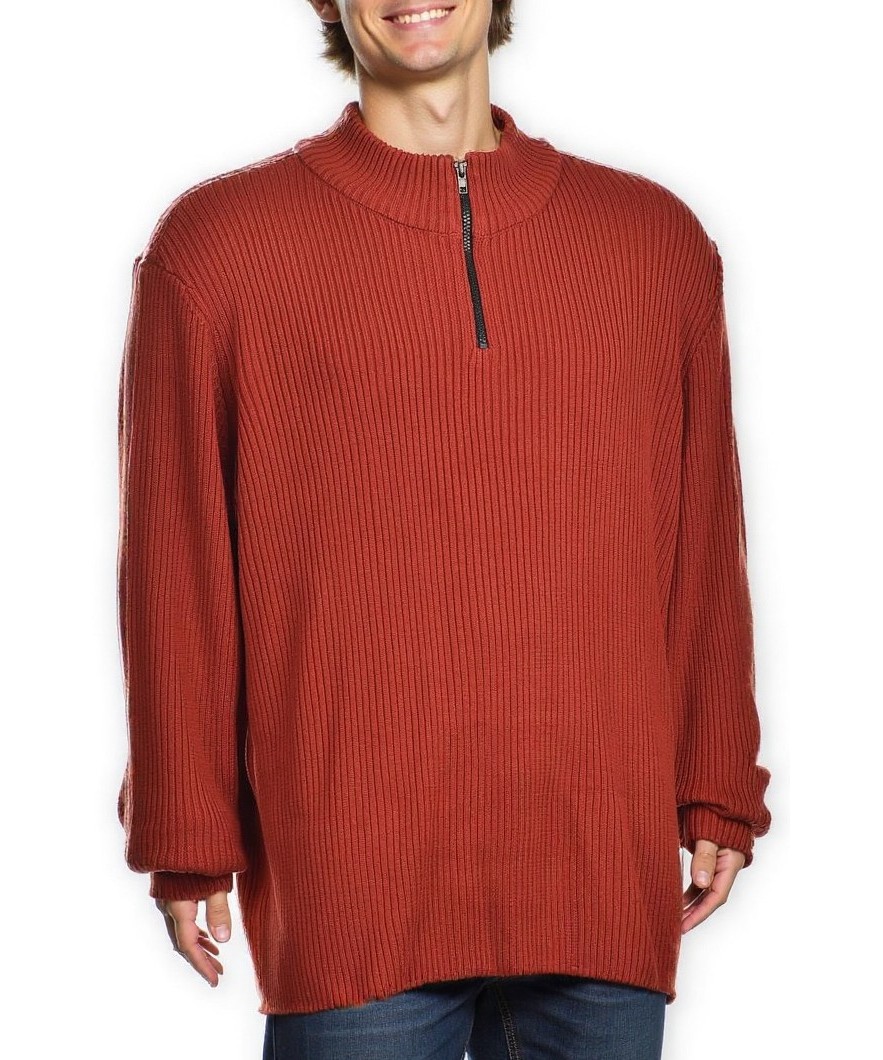 Мъжки памучен пуловер в топъл терракотов нюанс. Релаксирана кройка, ребристо плетиво и цип до деколтето за регулиране на вентилацията. Мек и дишащ, идеален за ежедневие. Подходящ за всеки ден и офиса.