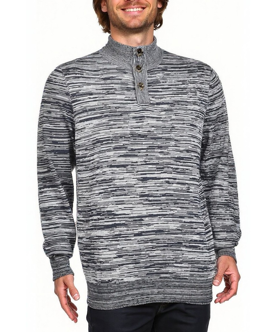 Мъжки памучен пуловер с дълъг ръкав и прав силует. Меланжирана сиво-бяла шарка, рипс деколте със стопери, ластични маншети и долна част. Удобен, дишащ и подходящ за ежедневие и офис. Практичен.