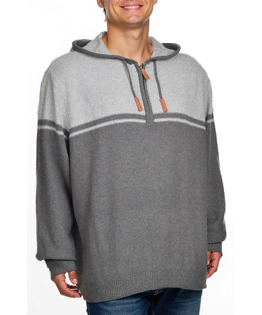 Мъжки памучен пуловер с качулка и цип до гърдите. Двутонален сив дизайн, мека плетка, рипсен маншет и подгъв. Удобен, топъл и стилен за всекидневно носене. Налични различни размери. Бърза доставка..!
