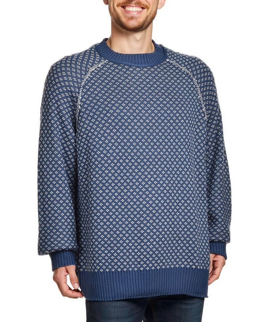 Мъжки памучен пуловер в тъмносин цвят с фина бяла шарка. Свободна кройка, кръгло деколте, ластик на ръкавите и подгъва. Топъл, удобен и лесен за поддръжка. Подходящ за ежедневно носене и подарък. Стил.!!