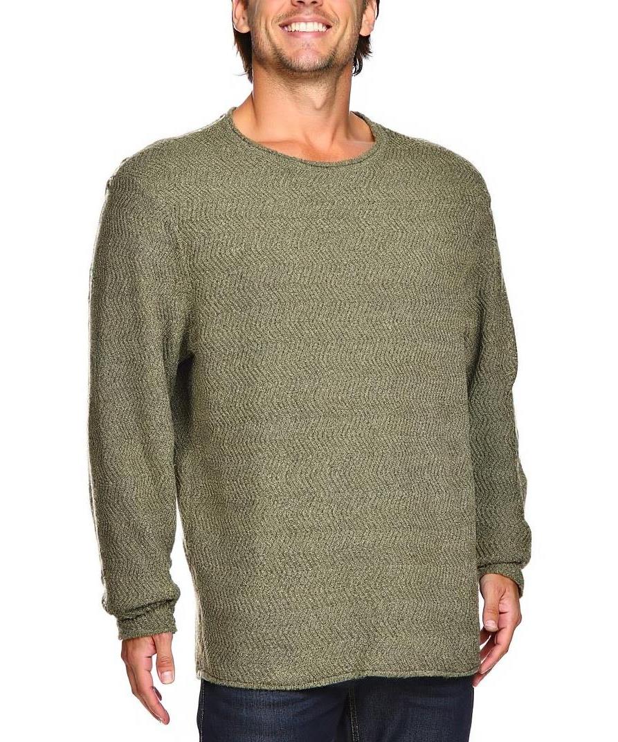 Мъжки памучен пуловер в камуфлажно-оливков цвят, мек и дишащ, с класическо кръгло деколте и релефна плетка. Удобен, ежедневен модел с леко свободна кройка и лесна поддръжка. Подходящ за пролет/есен.