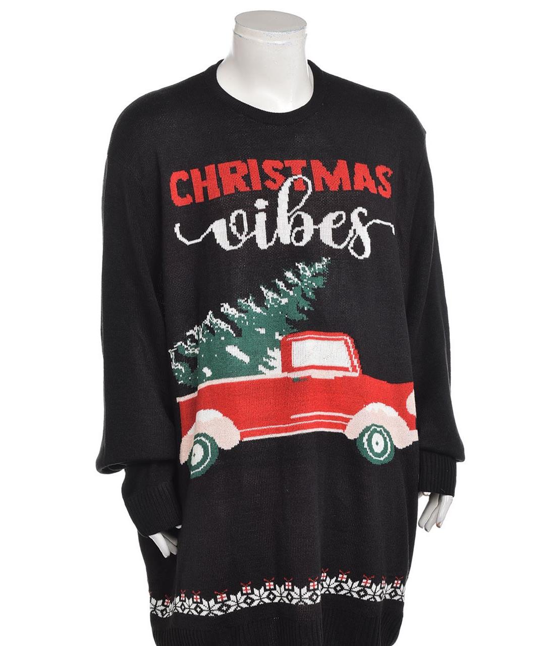 Мъжки коледен пуловер 'Christmas vibes' в черно с червен ретро камион и елха. Уютен плътен трикотаж, подходящ за празнични събития и ежедневие. Дълги ръкави и класическа кройка. Машинно пране. Акрил!!