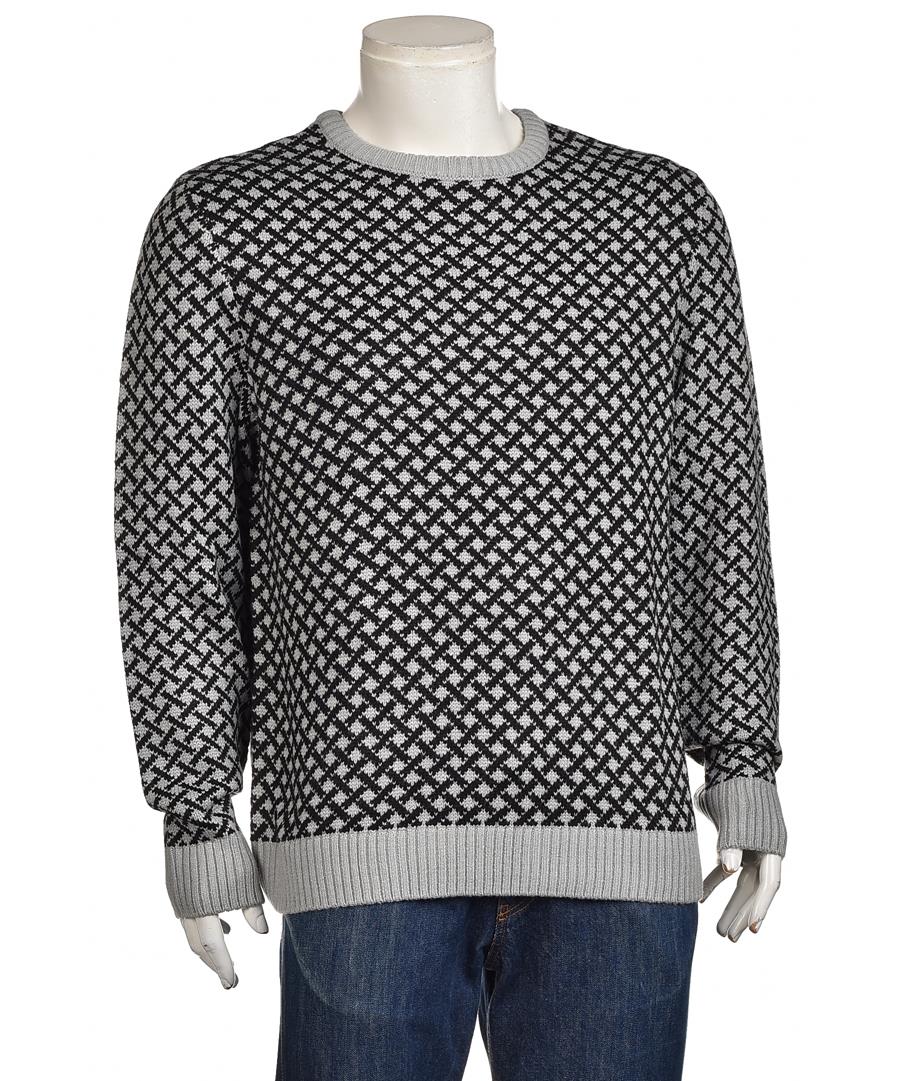 Мъжки пуловер с кръгло деколте и стилен жакардов десен в сиво и черно. Топъл, плътен плет с ластични маншети и долен ластик, идеален за ежедневен и полуофициален стайлинг. Размери: S-M-L-XL-XXL. Ново!