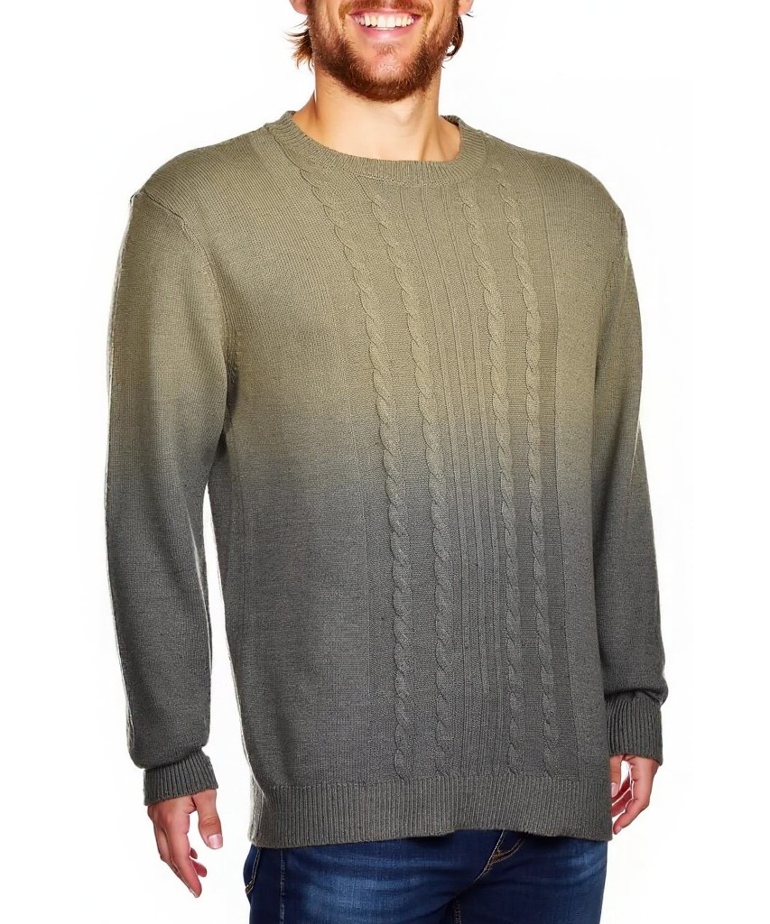 Мъжки памучен пуловер с фина оплетка отпред, кръгло деколте и дълги ръкави. Двоен градиент в зелено и сиво, комфортна кройка, дишащ и подходящ за ежедневен и официален стил. Лесна поддръжка бърза пратка