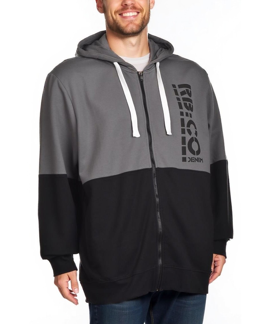 Мъжки памучен суичър с качулка и цип, двуцветен (сиво/черно). Комфортен и стилен, с джобове и ластични маншети за по‑добро прилягане. Меко памучно трико, идеален за ежедневие и спорт.