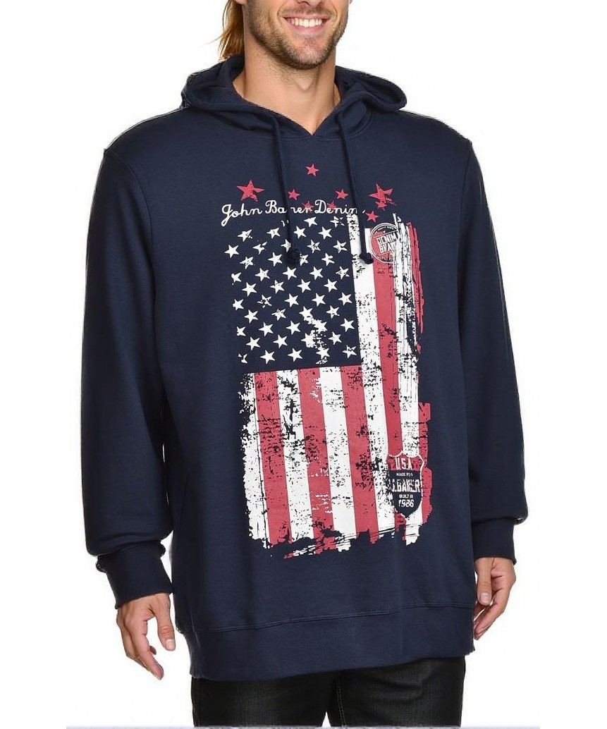 Мъжки памучен суичър с качулка и модерен избледнял принт на американски флаг. Мек, комфортен и стилен, идеален за ежедневно носене и свободно време. Налични размери и лесна поддръжка. В наличност: син