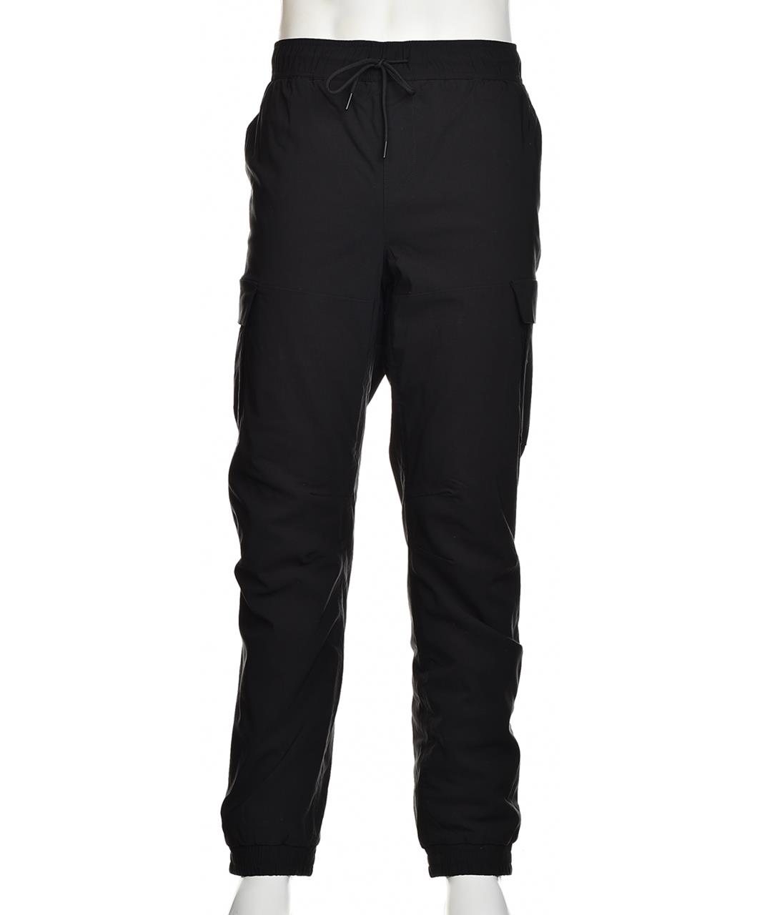 Мъжки ватиран панталон от вискоза в класическо черно. Еластичен колан с регулация, джобове тип карго и широки, комфортни крачоли с ластик в долната част за модерна, практична визия. Идеален за града.