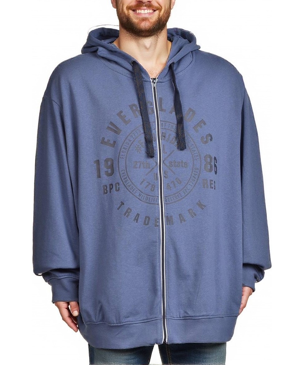 Мъжко памучно горнище с качулка и цип, удобно ежедневиева дреха в син цвят. Свободна кройка, дълги ръкави с ластици и джобове, меко и дишащо, идеално за през сезона и лежерни визии. Подходящо за спорт