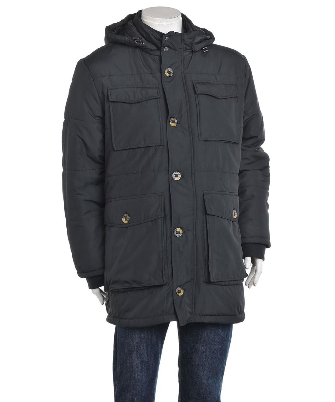 Мъжко зимно яке – въздушно ватирано, с качулка, преден цип и копчета, четири джоба с капаци, дълга кройка за допълнителна защита. Класическо, топло и практично за студено време. Елегантно и устойчиво.