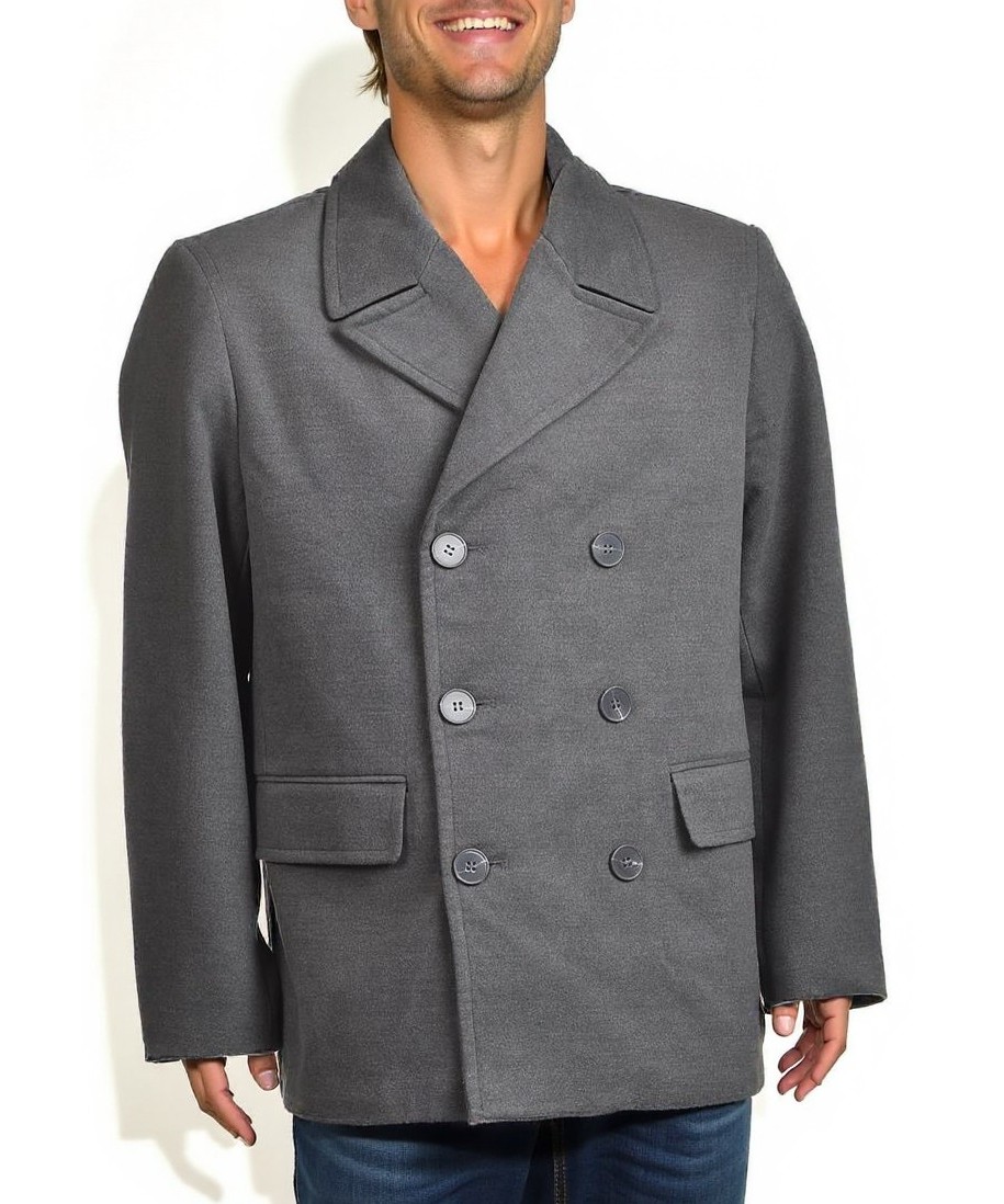 Мъжко преходно палто от вискоза в елегантно сиво. Двуредово закопчаване, широки ревери и джобове с капаци. Изчистен силует за комфортна, стилна и универсална визия през междинния сезон.