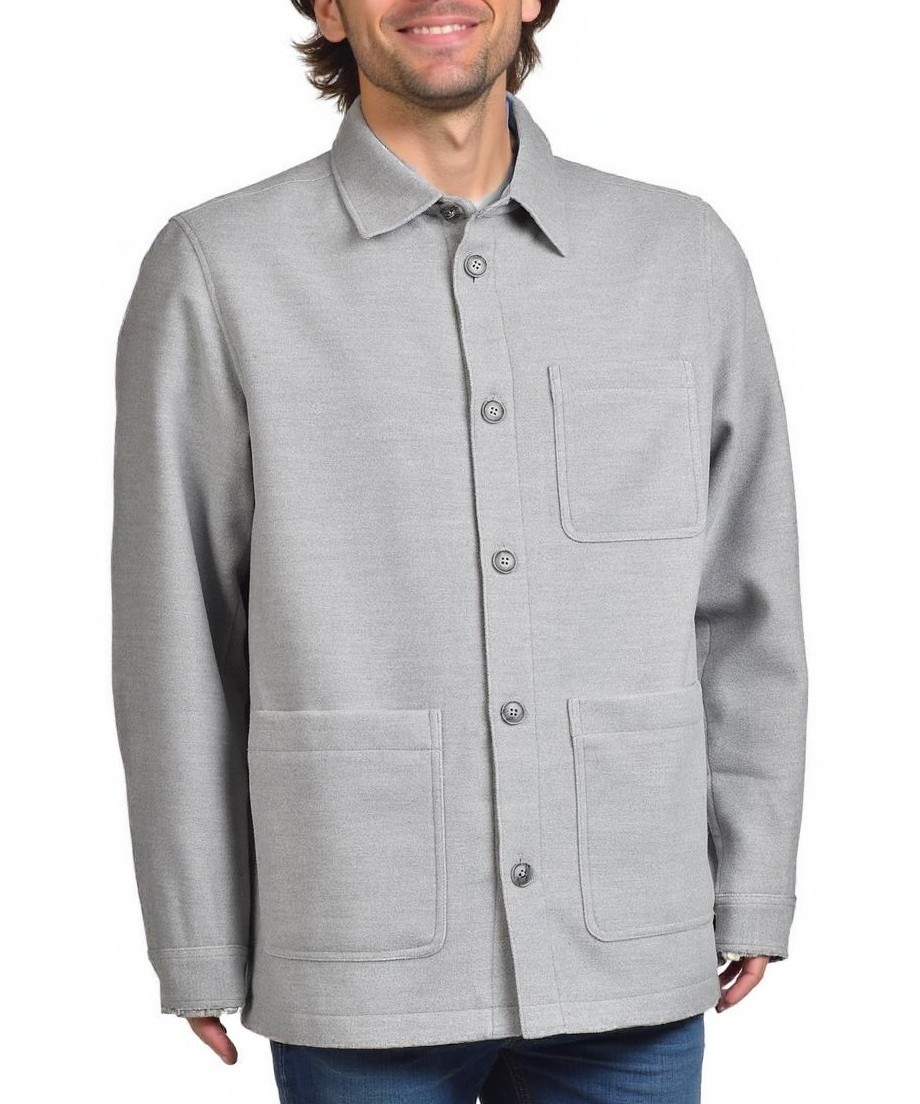Мъжко яке от вискоза в светлосив цвят: елегантна риза-яке с копчета, три джоба, изчистен модерен силует. Меко, дишащо и удобно за ежедневие и официални поводи. Лесна поддръжка и модерна кройка. Стил!.