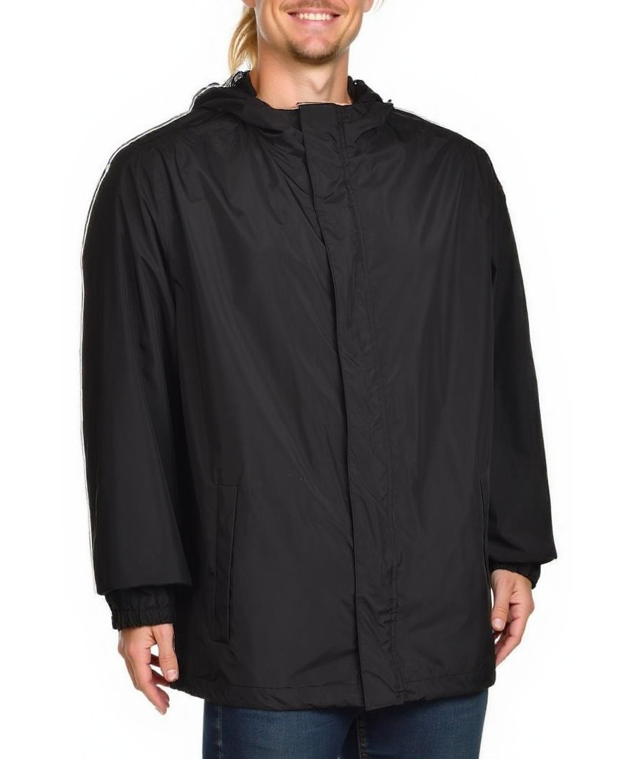 Мъжко черно яке с качулка, леко и водоотблъскващо, с цип и покриваща лента, еластични маншети и джобове. Идеално за ежедневие и пътуване — практично, удобно и стилно. Налични S-XXL. Полиестер. Материя