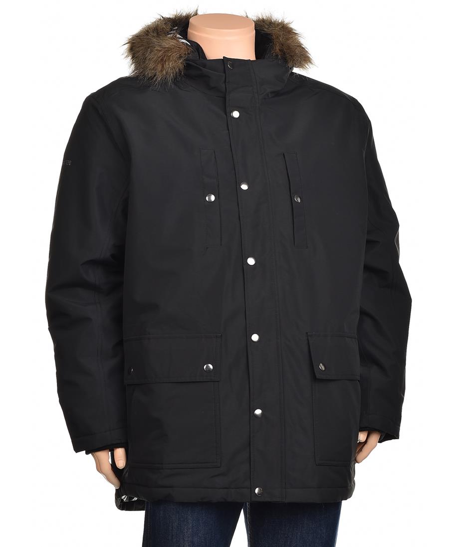 Мъжко зимно яке – изчистен черен парка с качулка с пухена яка, топло ватирано подплънка, големи фронтални джобове с капаци и вертикални джобове на гърдите, удобно и устойчиво на студ. Перфектен избор.