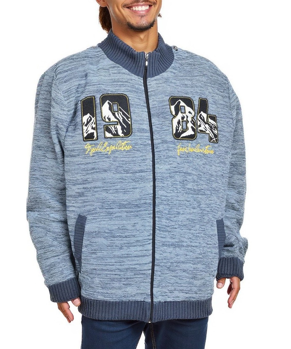 Мъжко памучно яке в светлосин меланж, с цип, прав силует и рипсени маншети и яка. Два джоба, апликации отпред и топла, мека материя за ежедневен комфорт и спортно-ежедневен стил. Подходящо за всеки ден.