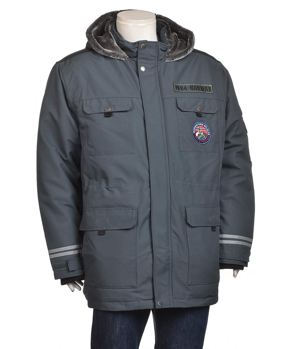 Мъжко зимно яке в сиво, с топла качулка с мек хастар, множество джобове и здрав цип. Водоотблъскващо, с рефлектиращи ленти за безопасност. Практично и стилно за ежедневна употреба. Подходящо за студено.