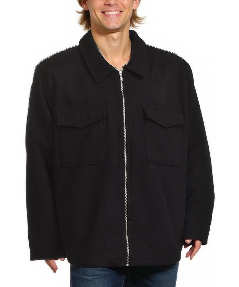 Мъжко яке от имитация на вълна, изработено от вискоза. Класическа яка и централен цип, два предни джоба с клапи. Уютно и стилно за преходните сезони — меко, топло и лесно за комбиниране. Идеален избор
