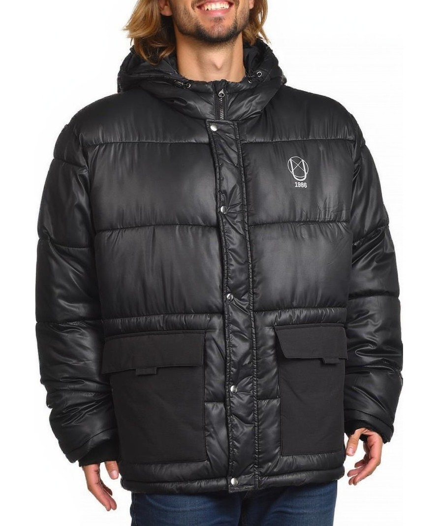 Черно мъжко зимно пухено яке с качулка, цип и копчета, два големи предни джоба с капаци. Топло и удобно за ежедневна употреба, стилно и практично за студено време. Подходящо за град и планина. Плюс.