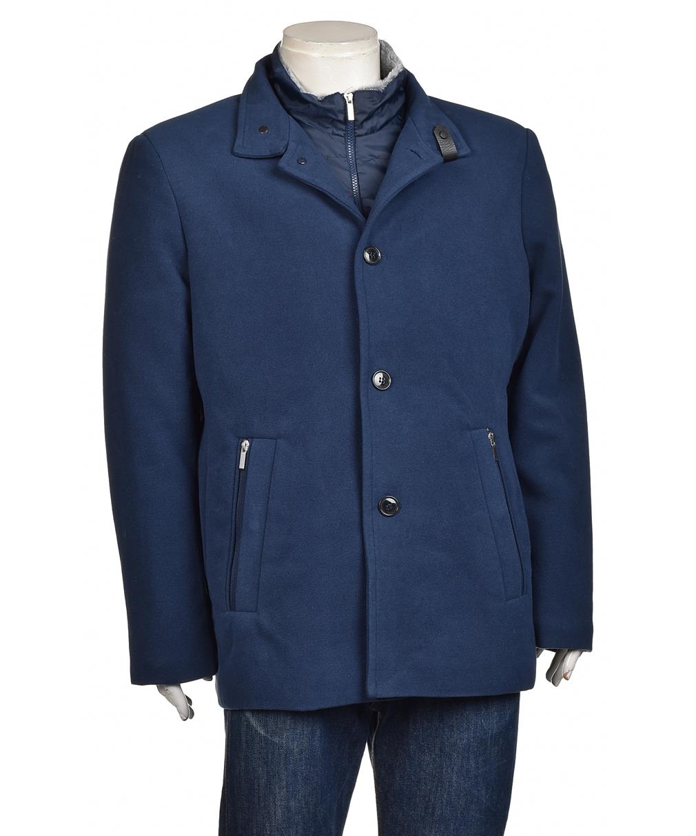 Елегантно мъжко палто от вискоза в тъмносиньо. Класическа кройка с копчета, два джоба с цип, подплатена вътрешна част за допълнителна топлина и удобна яка. Подходящо за ежедневие и офиса. Стилен, мек.