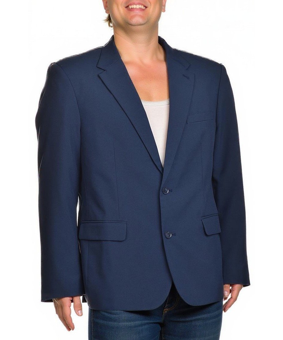 Елегантно мъжко сако в тъмносин цвят, изчистен силует и двуредно закопчаване с два бутона. Подходящо за офис и официални поводи, комфортна кройка и джобове с клапи. Материя с лек блясък. Втален модел.
