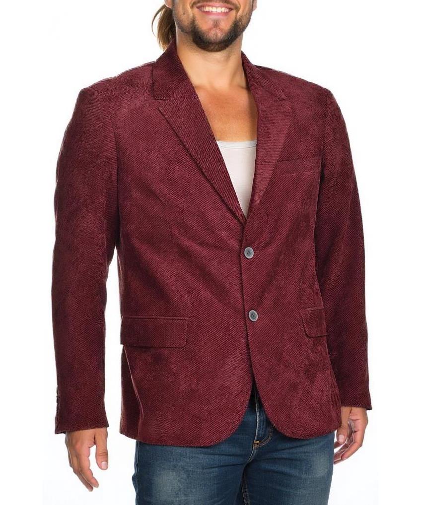 Мъжко сако от кадифе в бордо цвят, едноредово с два копчета, ревери тип notch, джобове с клапи и стилен ежедневен силует — комбинация от елегантност и комфорт. Подходящо за официални и ежедневни визии.