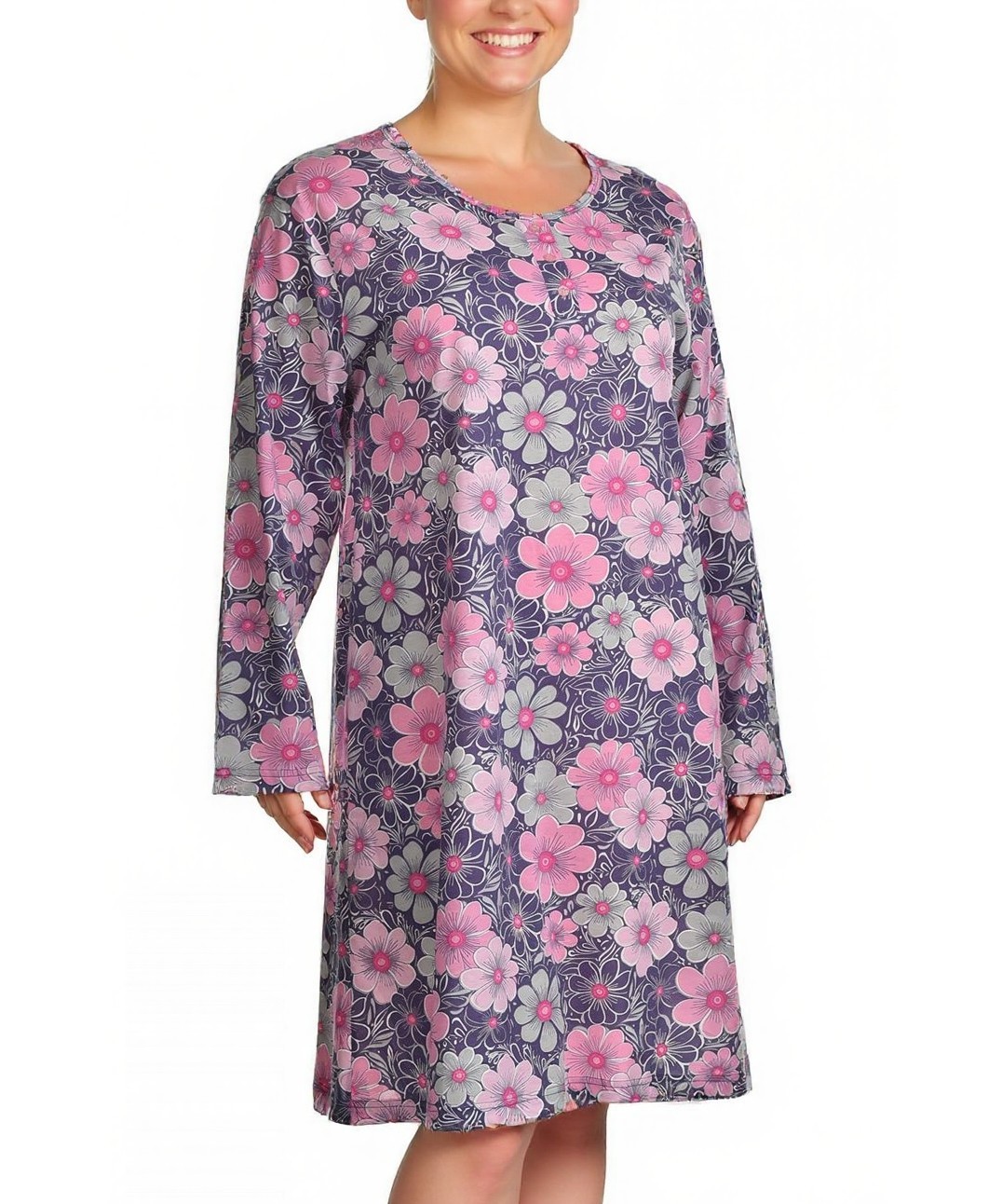 Класическа нощница от 100% памук с розово-сив флорален десен, дълги ръкави и свободна кройка до коляното. Мека, дишаща и лесна за пране, идеална за уютни вечери. Подходяща за всеки ден и уют вкъщи
