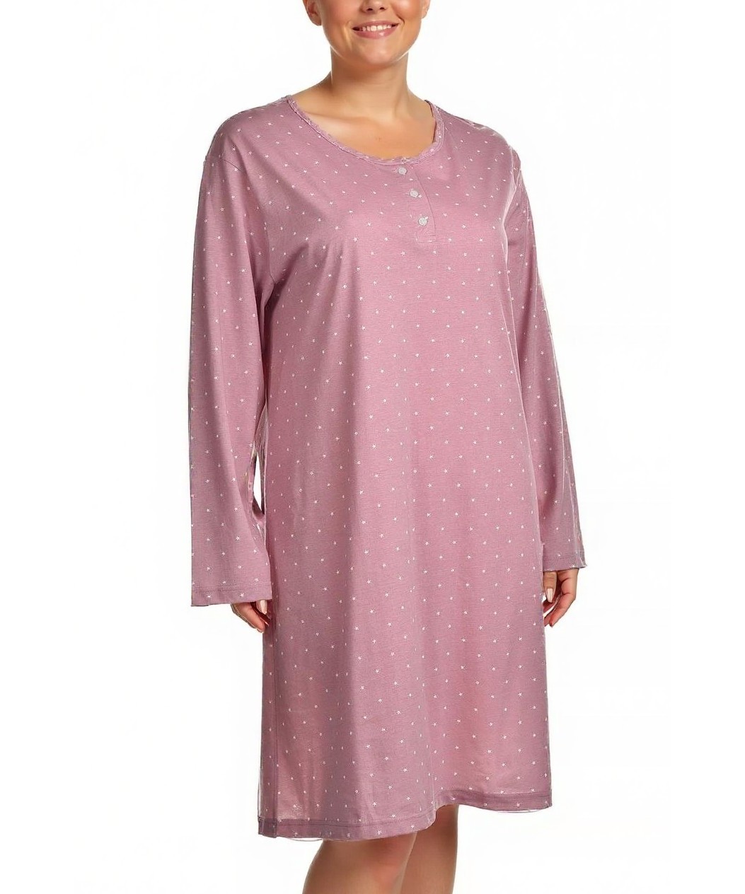 Памучна нощница в нежно розово с фини бели точки. Свободна и удобна кройка, дълги ръкави, копчета отпред. Мека, дишаща материя, подходяща за всекидневна употреба и лесна поддръжка. Подходяща за S-XXL.!