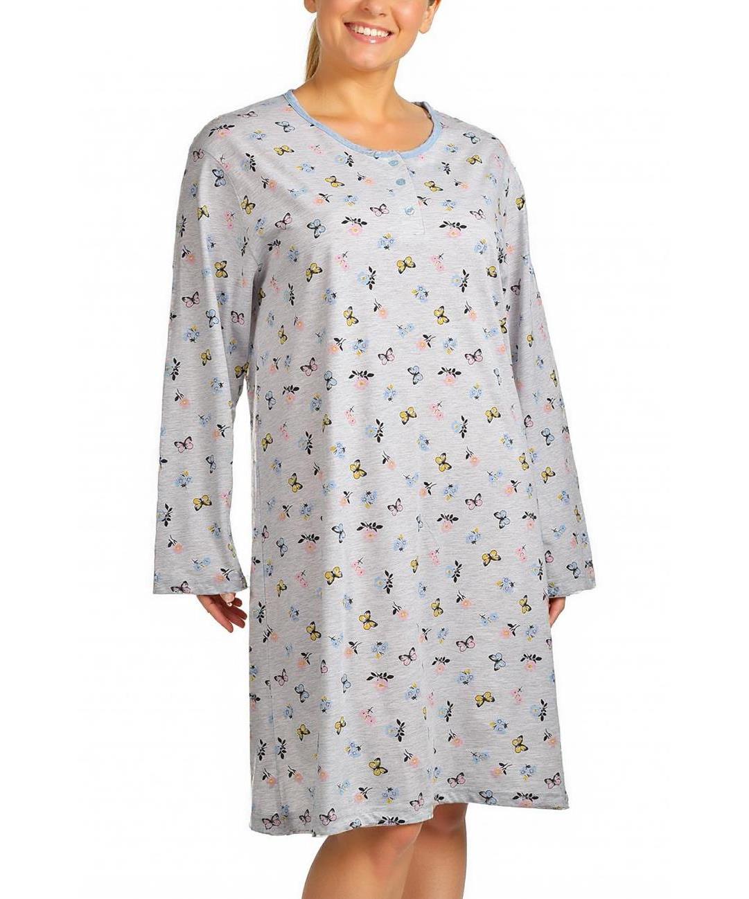 Мека нощница от 100% памук с дълги ръкави и обло деколте. Свободен, комфортен силует, светлосив фон с нежни цветни пеперуди. Идеална за уют и спокойен сън през всички сезони. Лесна поддръжка, подарък!