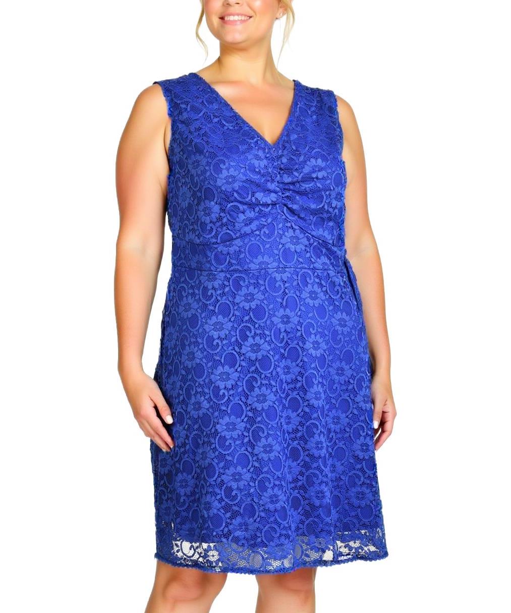 Елегантната официална рокля в кралско синьо впечатлява с деликатна дантелена тъкан и V-образно деколте. Леките набори в предната част придават изтънченост, подходяща за специални поводи.