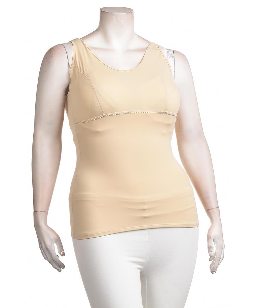 Елегантен оформящ потник в бежов цвят, изглажда корема и талията, с повдигащ ефект на гърдите, еластична, безшевна конструкция за комфорт и дискретно оформяне под дрехите. Микрофибърно, машинно пране.