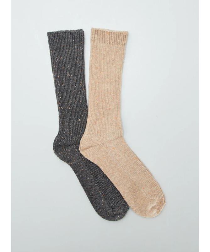 Двоен пакет: 2 вълнени чорапа в неутрални нюанси (бежово и тъмносиво). Меки, термоизолиращи и дишащи, с рипсен дизайн и комфортна дължина до прасеца. Подходящи за студени дни и ежедневна употреба. Еко