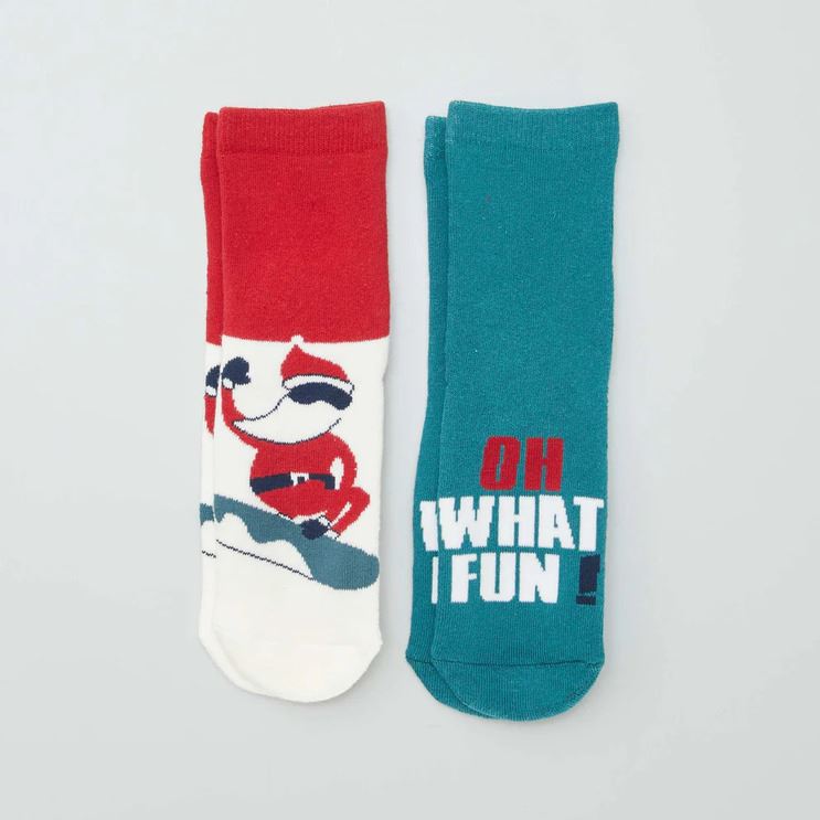 Комплект от 2 памучни чорапа с весел коледен дизайн: едното със Санта, другото с надпис „Oh what fun“. Меки, дишащи и удобни, идеални за подарък и ежедневна употреба. Готини, мек памук, лесно се перат.