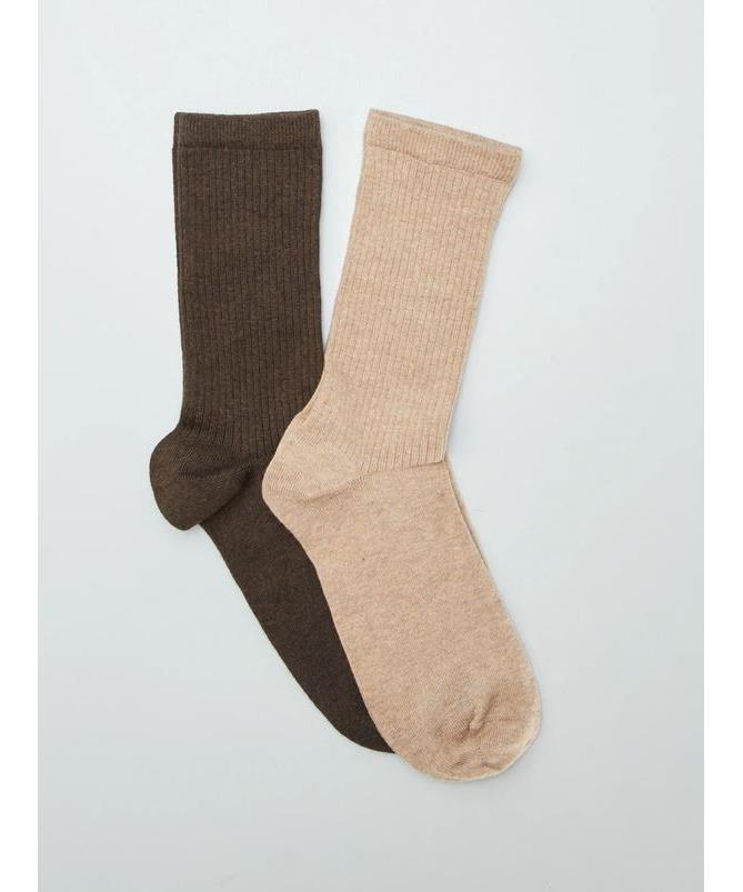 Комплект 2 чифта памучни чорапи в неутрални тонове - бежово и кафяво. Меки, дишащи и удобни за ежедневно носене, със стройна плетка и здрави шевове. Подходящи за различни обувки. Идеални за подарък и всеки ден!!