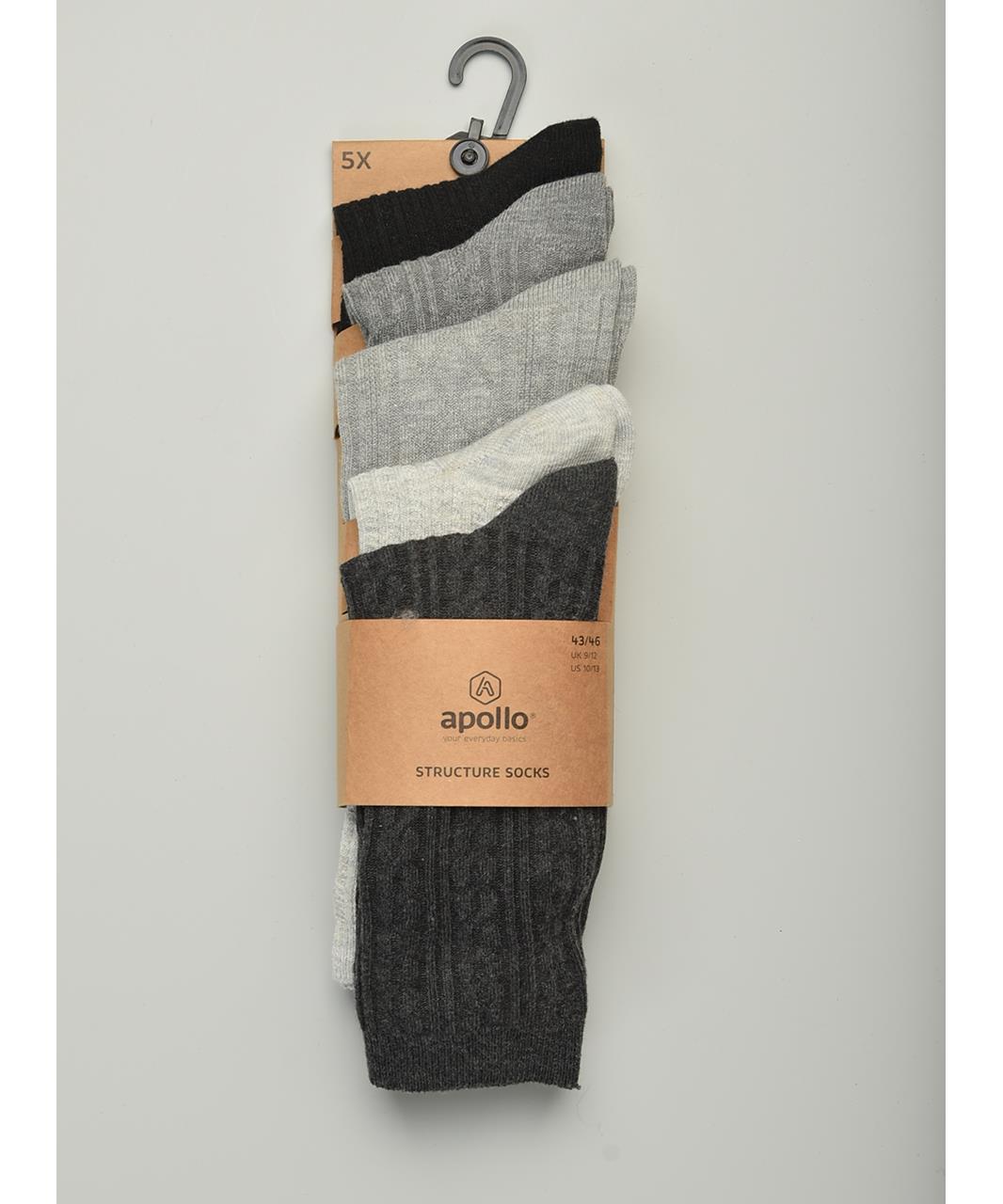 Комплект 5 памучни чорапа Apollo в неутрални тонове (черно, тъмно и светло сиво, екрю). Рипсен десен, меко и дишащо плетиво за ежедневен комфорт и издръжливост. Подходящи за подарък, машинно пране. БГ