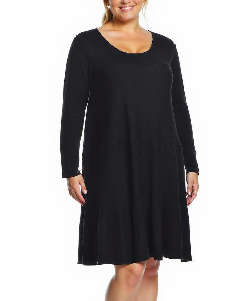 Плетена рокля от вискоза в класическо черно. Дълги ръкави, кръгло деколте и леко разкрояване за свобода на движение. Мека, приятна на допир, подходяща за всеки ден и официални случаи. Стилен и удобен.