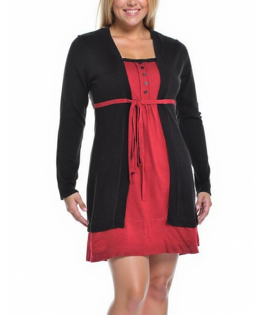 Елегантна плетена рокля в двуцветен дизайн - черно кардиганче с червена подплата, дълги ръкави и коланче в талията. Мека, удобна и практична за всеки ден и преходния сезон. Идеална за всеки деми сезон
