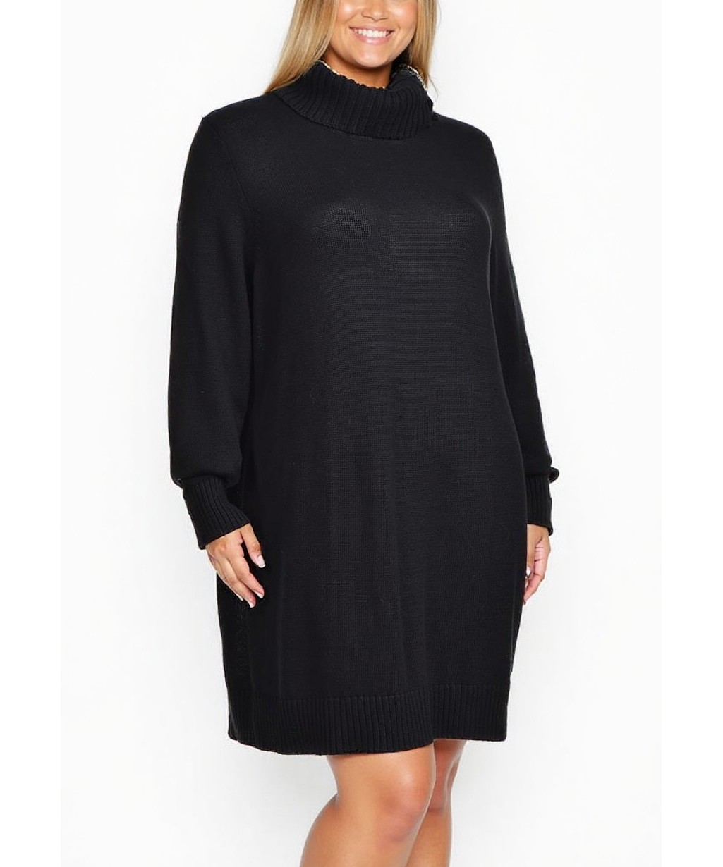 Плетена рокля от памук с поло яка, свободна кройка и ръкави с рипс маншети. Мека, дишаща материя, подходяща за ежедневие и прохладни дни, в елегантен минималистичен градски стил.