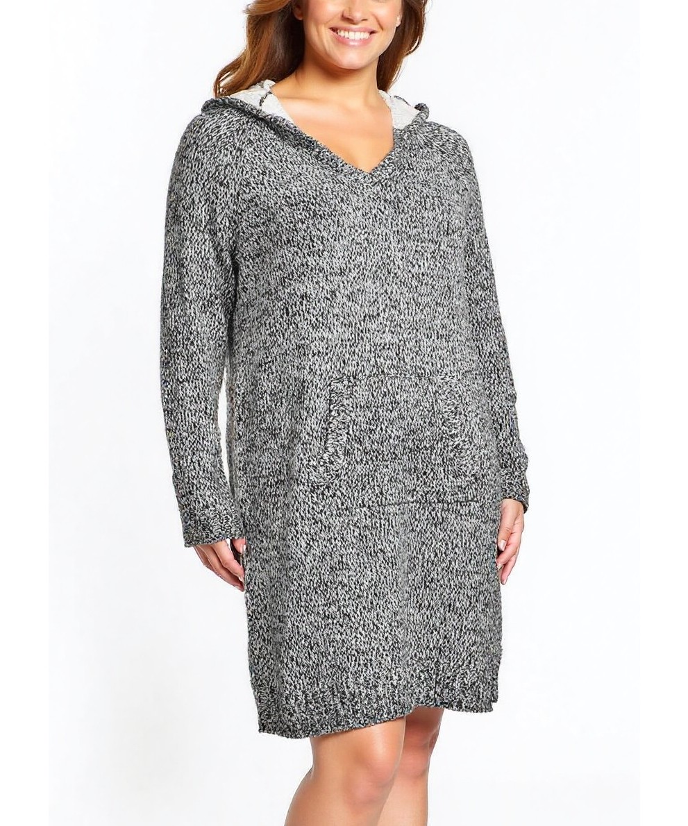 Плетена меланжова рокля с качулка и подплата, джоб тип кенгуру, свободна кройка до коляното и дълги ръкави. Топла, уютна и идеална за ежедневие. Подходяща за всеки ден, лесна за грижа и комбиниране.