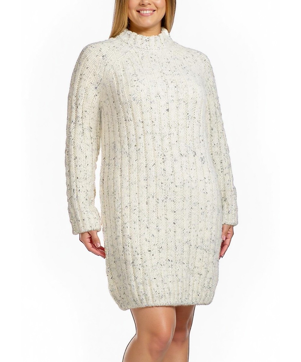 Мека плетена рокля от 100% вълна в кремав меланж. Свободен силует, висока яка и дълги ръкави, релефни оплетки и еластични маншети. Топла, уютна и стилна за зимни дни. Лесна за грижа, идеална за работа