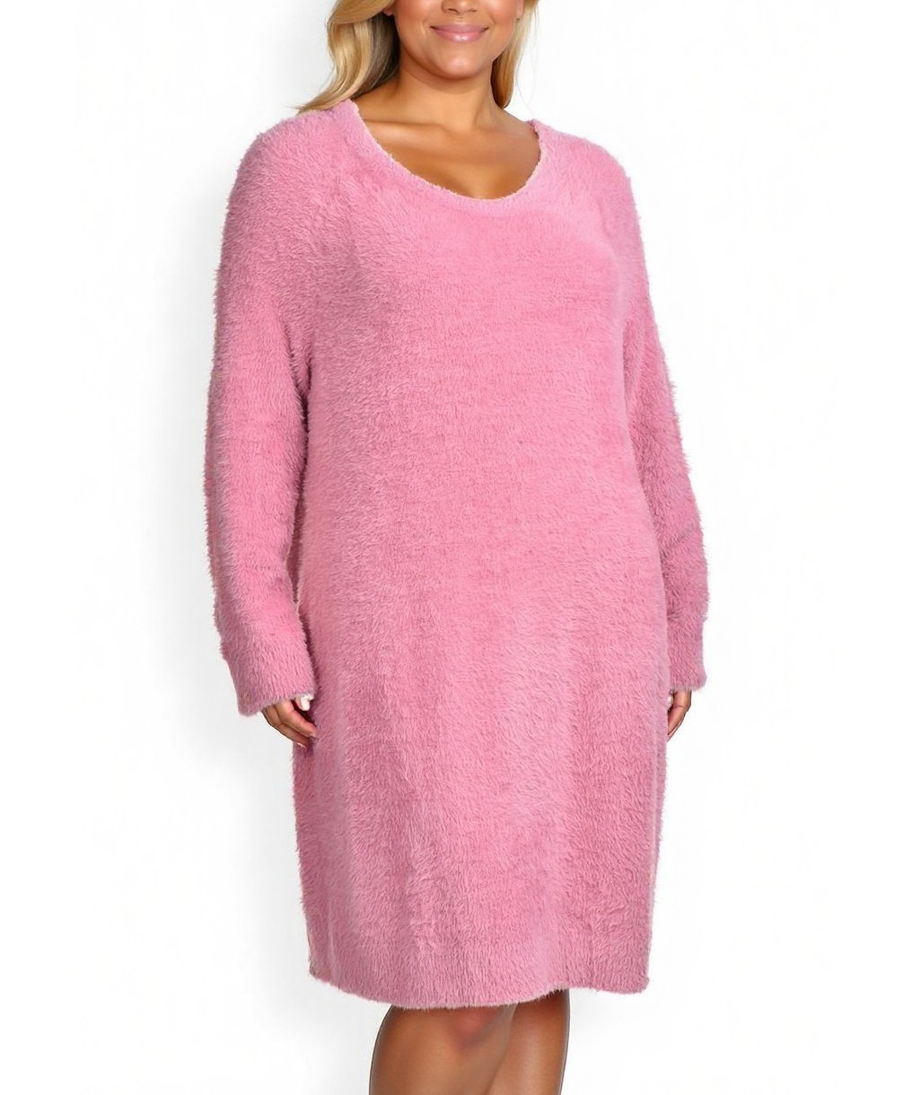 Плетена рокля от вискоза, мека и топла, в прасковено розово. Свободна до коляното кройка, обло деколте и дълги ръкави. Идеална за уютни дни, ежедневие и релаксация у дома. Перфектна за подарък и празник