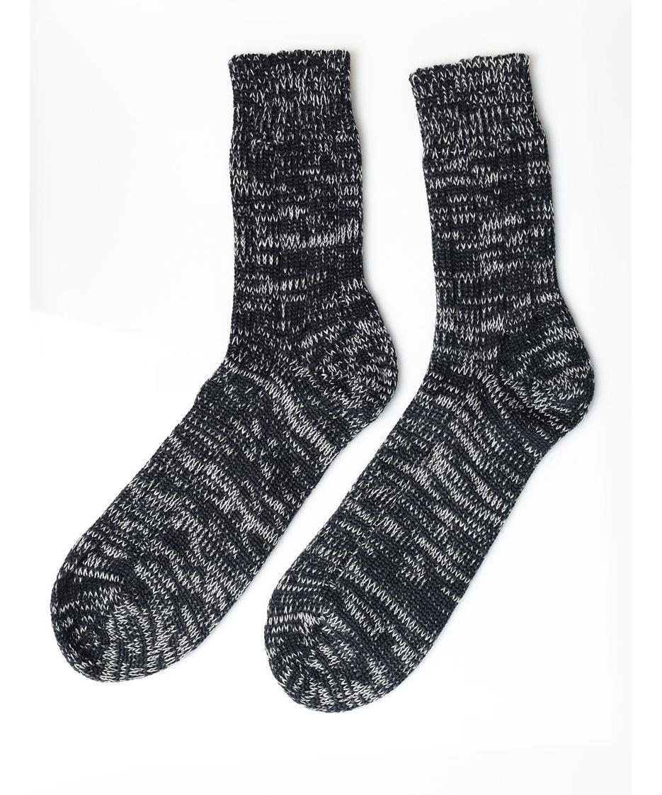 Топли плетени вълнени чорапи в меланжово черно-сиво, меки и дишащи, с еластичен маншет и подсилена пета. Идеални за планина и всеки ден — удобство, издръжливост и традиционен стил. Състав: 80%вълна.