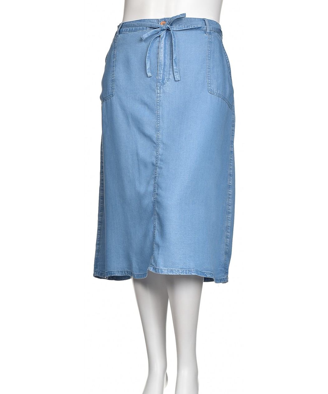 Пола от лиоцел в светло син цвят, със средна дължина и права кройка. Има колан на талията и предни джобове. Материята е мека и приятна на допир, осигуряваща комфорт и стил. Идеална за ежедневието.