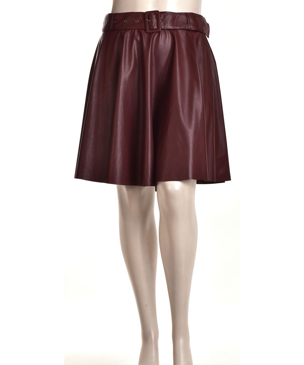 Къса пола от еко кожа в тъмно бордо, с леко разкрояване и колан в талията. Модерен, устойчив и лесен за комбиниране модел - идеален за офис и вечерни визии. С мека подплата, удобен цип. Запазва дълго