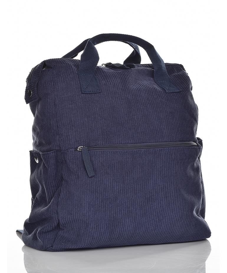 Тъмносиня раница от плътен велурен плат, с преден джоб с цип, удобни дръжки и регулируеми презрамки. Просторна и лека, идеална за всекидневна употреба и градски преходи. Идеална за училище и пътувания