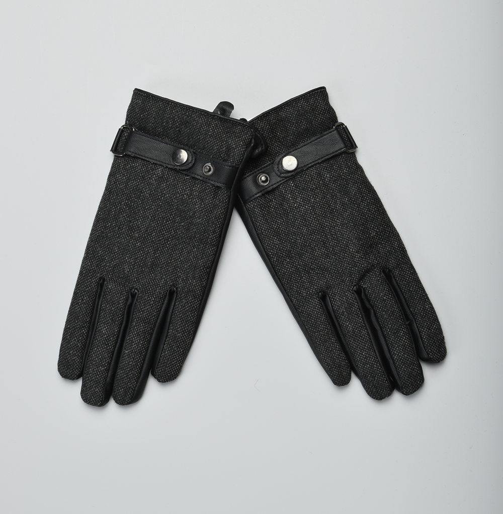 Тези ръкавици от памук предлагат комфорт и топлина, допълнени от стилен дизайн с тъмни, елегантни щрихи. Идеални за ежедневно носене и предпазване от студеното време.