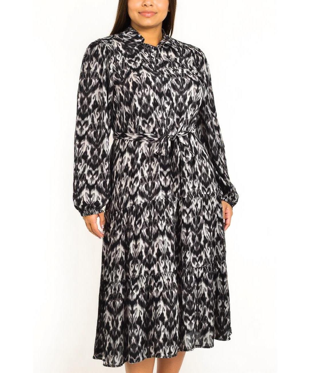 Елегантна рокля от вискоза с дълъг ръкав, яка тип риза и колан на талията. Миди дължина и свободна, феерична пола с черно-бял абстрактен принт — удобна за ежедневие и официални събития. Лека и стилна.