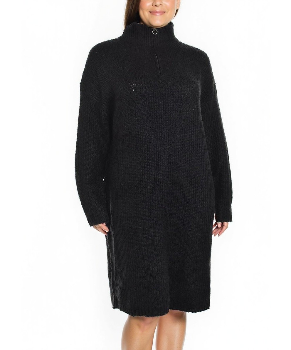 Черна плетена рокля тип пуловер с висока яка и късо ципче, дълги ръкави и свободна кройка. Топла и удобна за есен/зима, стилна за ежедневие или офис в уютен минималистичен стил. Подходяща за всеки ден.