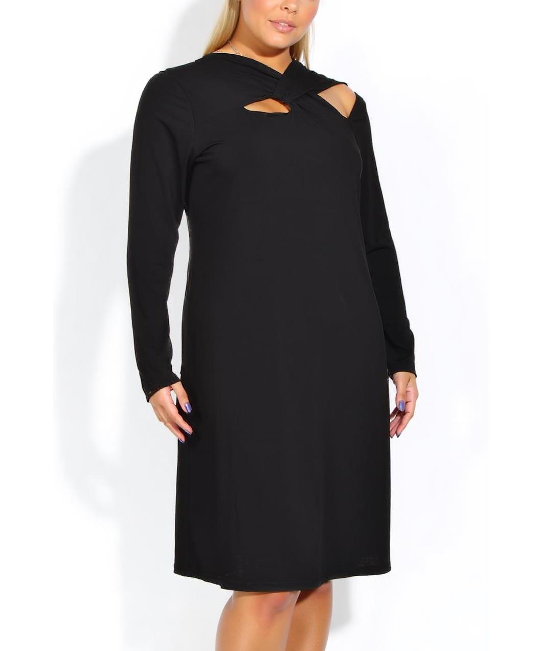 Елегантна черна рокля с дълги ръкави и надхвърлена кръстосана яка с дискретни прорези. Прав силует до коляното, подходяща за официални и ежедневни поводи. Комфортна и стилна. Лека, лесна за грижа!!!