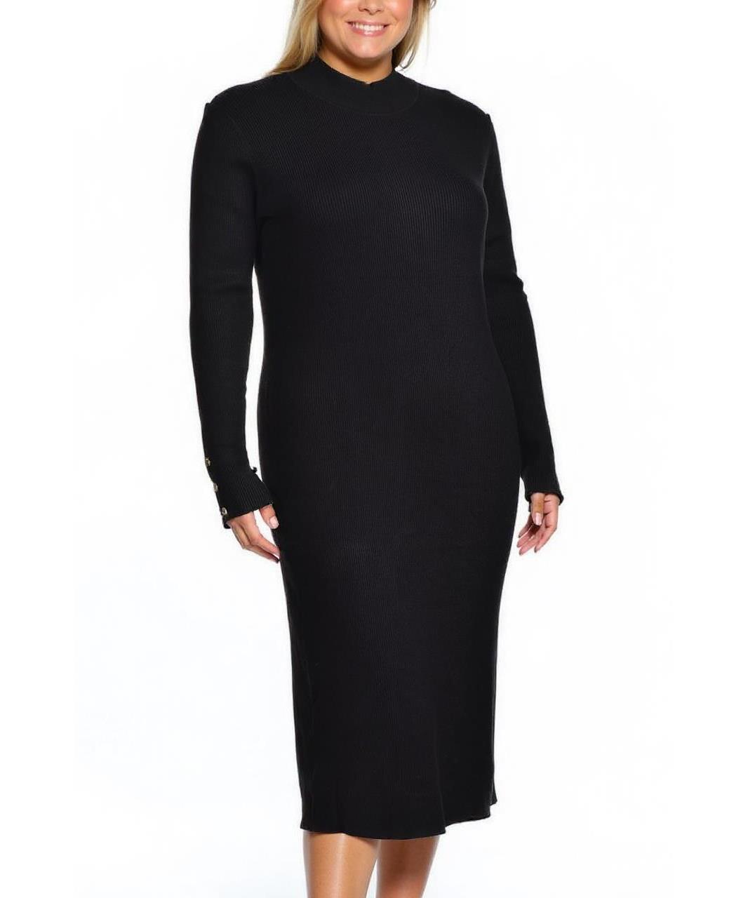 Елегантна черна рокля от вискоза, midi дължина, прав силует с вталяване, дълги ръкави и висока шия. Мека, дишаща материя, дискретни копчета на маншетите — идеална за работа и вечер. Стилна и удобна!!
