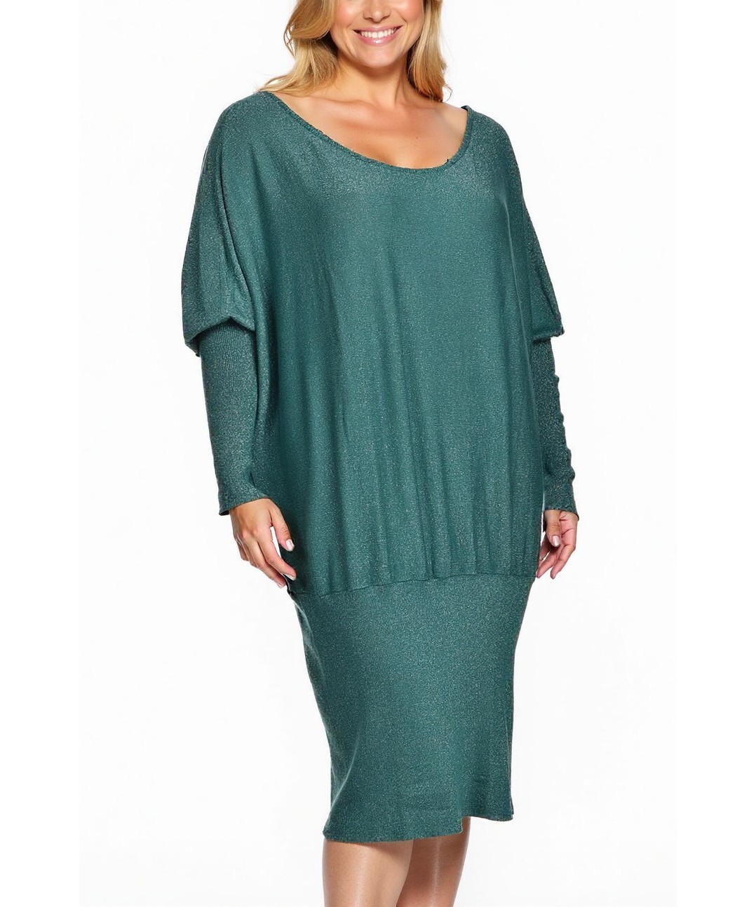 Рокля от ВИСКОЗА. Елегантна, мека и лъскава зелена рокля с права, свободна кройка, дълги ръкави и еластична талия. Идеална за официални и ежедневни поводи, комфортна и стилна. Подходяща за всички дни.
